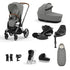 Enjoy a luxurious, flexible travel setup: the stroller offers multiple modes, the carrycot supports safe flat positioning, the car seat rotates and integrates with the system, and accessories keep baby cosy, shaded, and essentials close at hand.
