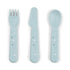 The cute cutlery set for babies and toddlers consists of a spoon, fork, and knife. Once the cutlery has served its purpose through countless family dinners, it can be sorted as plastic and recycled into new everyday life products.