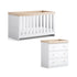 The Little Acorns Burlington 2-Piece Bundle (cot bed and dresser/changing unit) offers a beautifully coordinated nursery set that blends practical functionality with timeless Scandinavian‑inspired style. Crafted with solid oak-effect details and spacious storage, this set grows with your child—starting from birth through toddler years. The cot bed features three adjustable mattress heights and converts into a toddler bed by removing side panels. The dresser includes three large drawers and a removable changing surround, transforming into a chest of drawers over time. The double wardrobe offers flexible shelving and hanging rails that adapt as clothing needs change—providing both lasting style and long-term value.