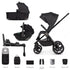 • The Venicci Upline 2 11 Piece Bundle includes chassis, carrycot, seat unit, Tiago iSize car seat and adapters, 360 isofix base, stylish backpack, changing mat, footmuff, universal raincover and universal mosquito net