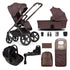• The Venicci Upline 2 SE 12 Piece Bundle includes chassis, carrycot, seat unit, Tiago iSize car seat and adapters, 360 isofix base, stylish eco-leather backpack, changing mat, footmuff, cup holder, raincover and mosquito net